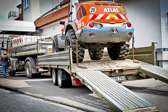 Für Transporte halten wir zwei Tieflader für kleine und große Baumaschinen oder Geräte bereit.